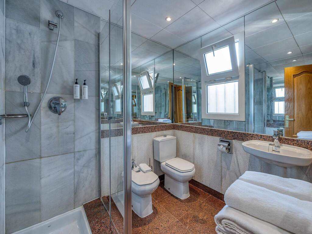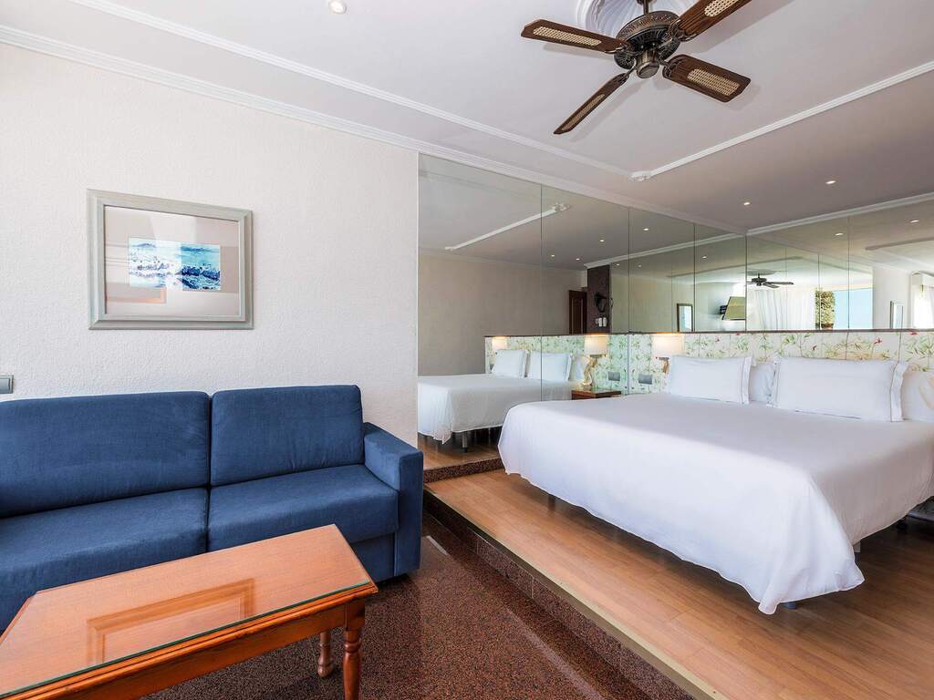 Located in an independent building on the beachfront, this room offers a 1.80x2 m bed or two 1.35x2 m beds, 43" LCD TV, bathroom with shower and walk-in wardrobe. As if this were not enough, it includes a large round bathtub in the bedroom. In all the Suites you can enjoy the exclusive advantages of our VIP Service.