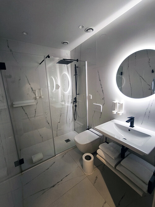 Room equipped with two single beds (90 x 2 m). Its private balcony offers stunning views of the port of Mahón.