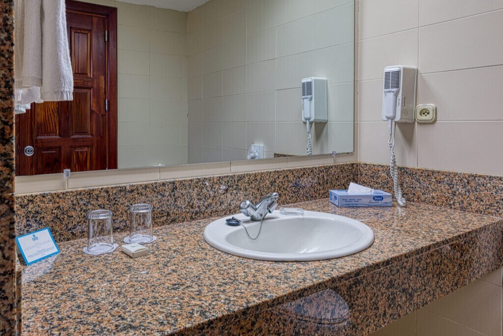 Chambres doubles à quelques pas de la plage, équipées d’un lit King Size (2 x 2 m), offrant espace, confort et tout le nécessaire pour se détendre : salle de bains privée avec articles de toilette, douche, sèche-cheveux, minibar, TV satellite, téléphone et balcon.