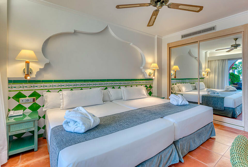 Avec des installations comme celles de Playacálida, vous ne passerez pas beaucoup de temps dans la chambre, mais si vous le faites, vous apprécierez certainement ses deux lits de 1,35x2 m (ou de 1,20x2 m) et son équipement pratique : téléphone, coffre-fort à louer, télévision par satellite, chauffage / air conditionné, salle de bain complète avec sèche-cheveux, et terrasse.