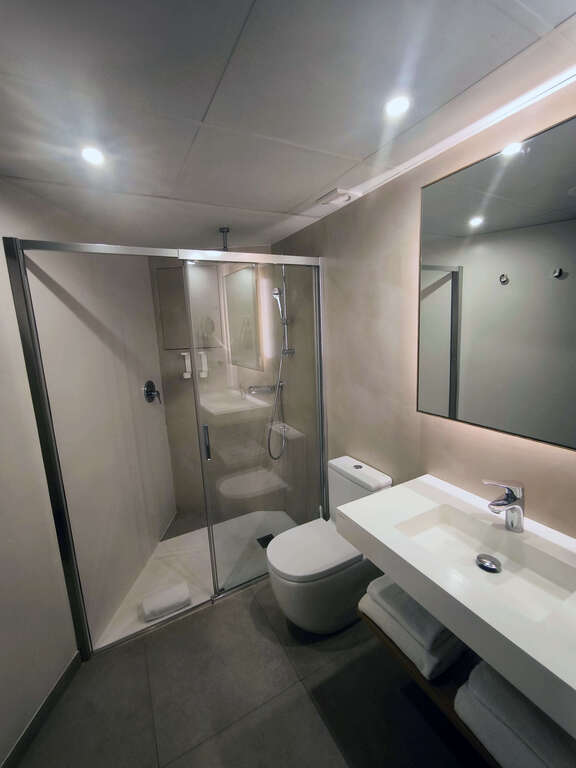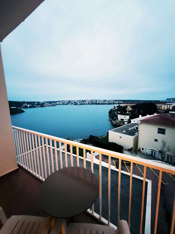 2 camas individuales (0,90 x 2 m). Espacio luminoso y cómodo con balcón al mar. Ideal para relajarse contemplando la Isla del Rey y el Puerto de Mahón.